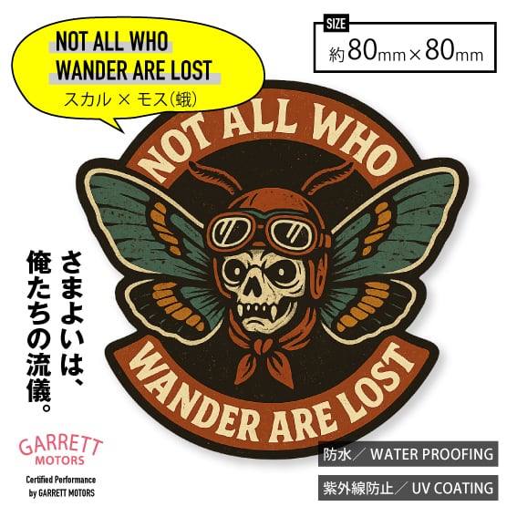このフレーズを、スカル×モス(蛾)×ヴィンテージバイカーのモチーフで描いたステッカーです。
