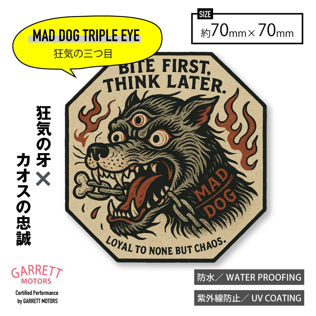 三つ目の“狂犬”が吠える、アメリカン・ヴィンテージホラー調デザイン。