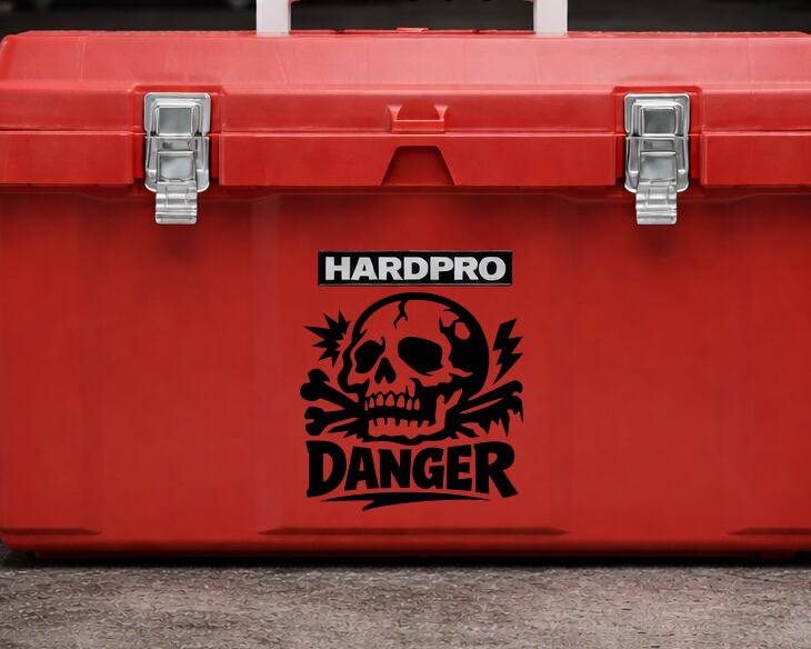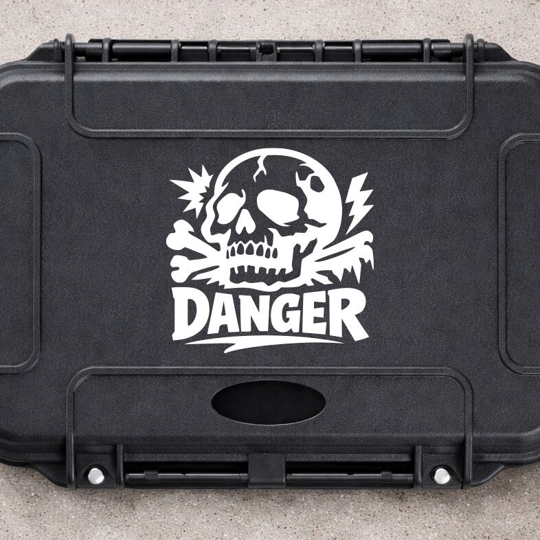 あらかじめカットされた線画部分のみを転写シートから貼り付ける構造で、設置後は骸骨と文字部分だけが残ります。一般的なシールタイプのステッカーとは異なり、図柄部分のみが残る転写方式のため、下地の色や素材を活かした表示が可能です。