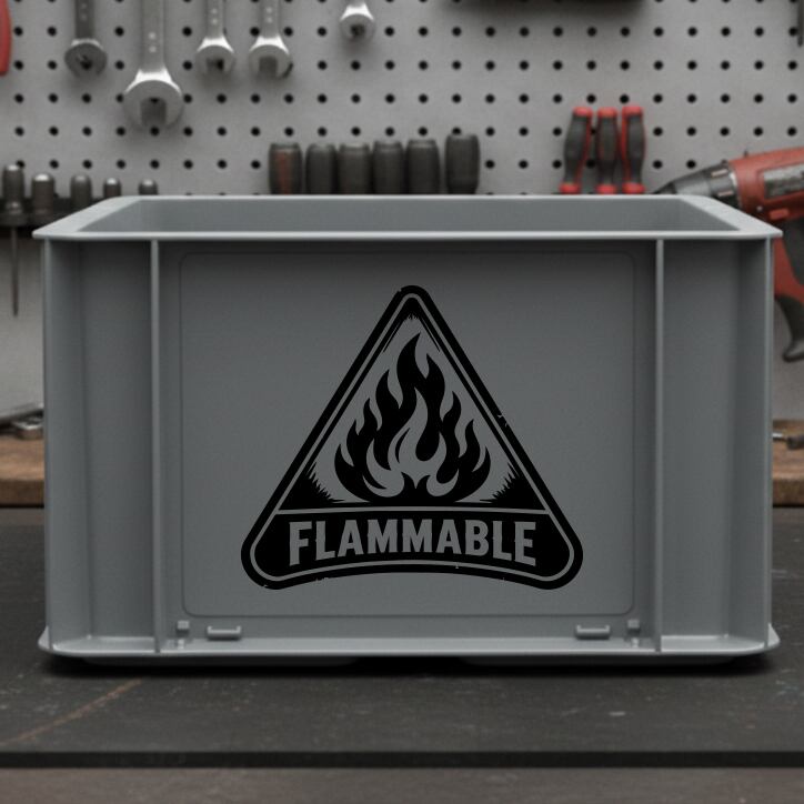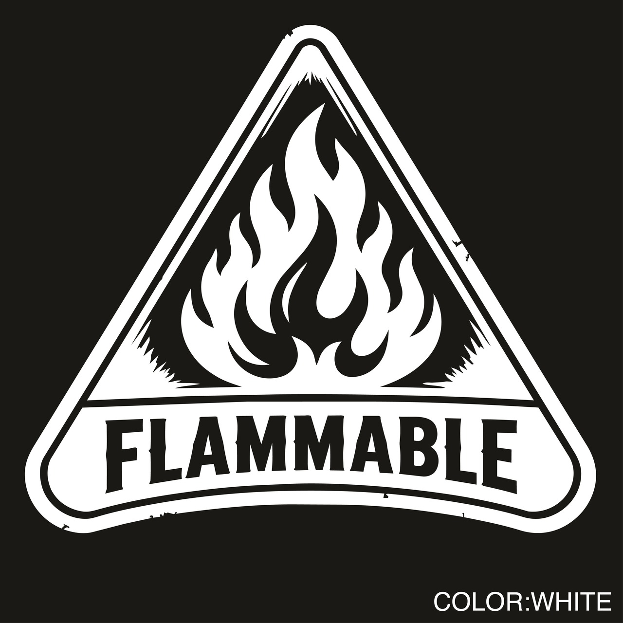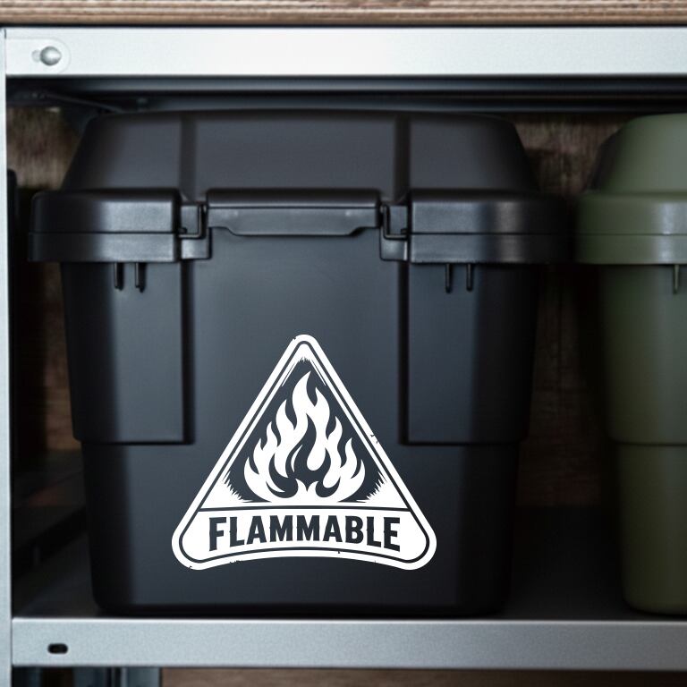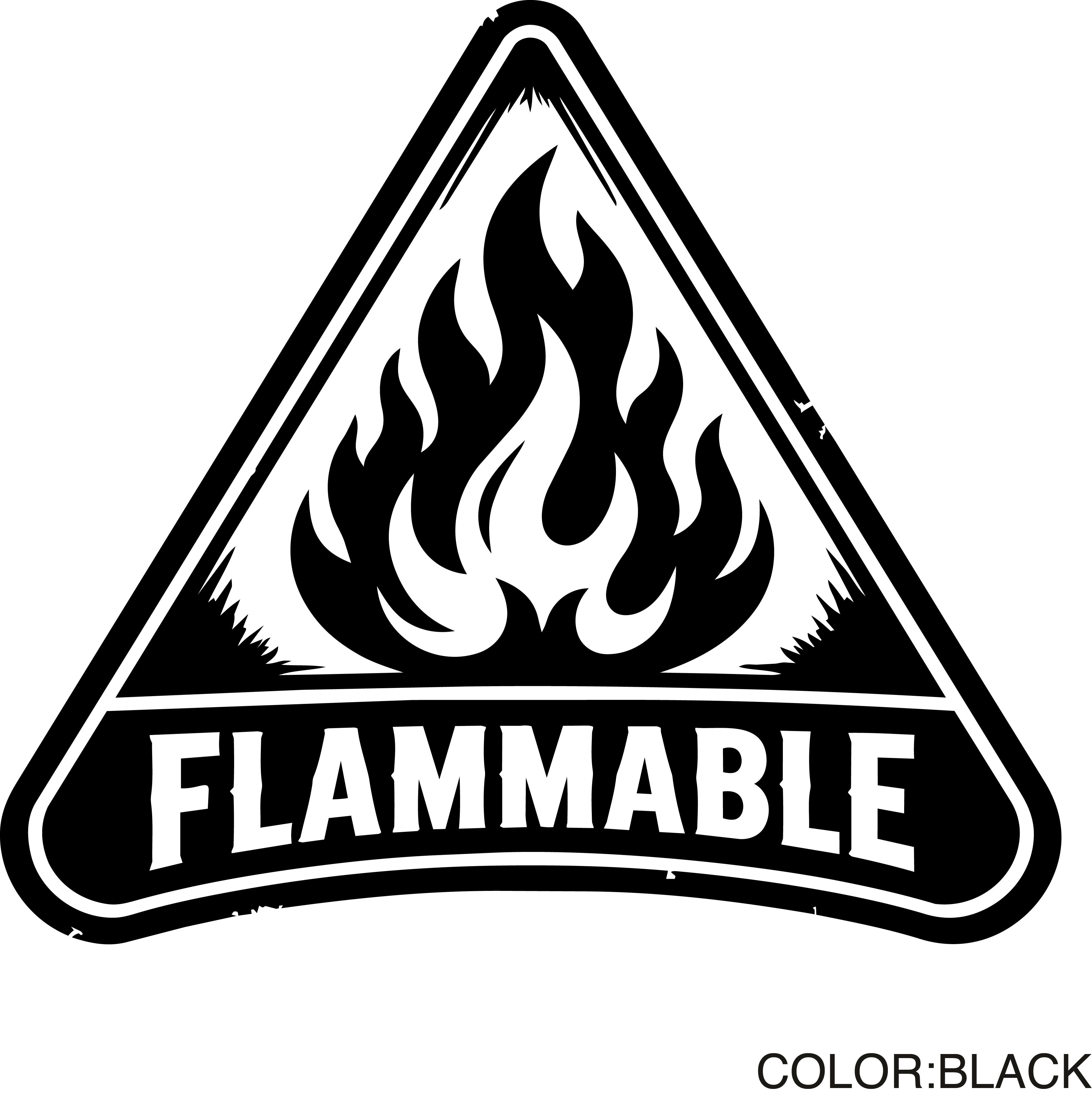 火気厳禁 ステッカーを倉庫用表示として使用する製品である。炎モチーフの線画のみで構成する。背景なしの転写デカール仕様である。防水・耐候仕様で屋外対応である。倉庫の扉や壁面に貼付可能である。