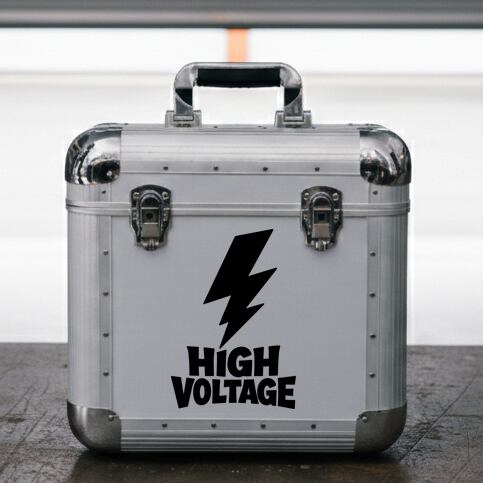 高圧注意 ステッカーの設備用表示である。