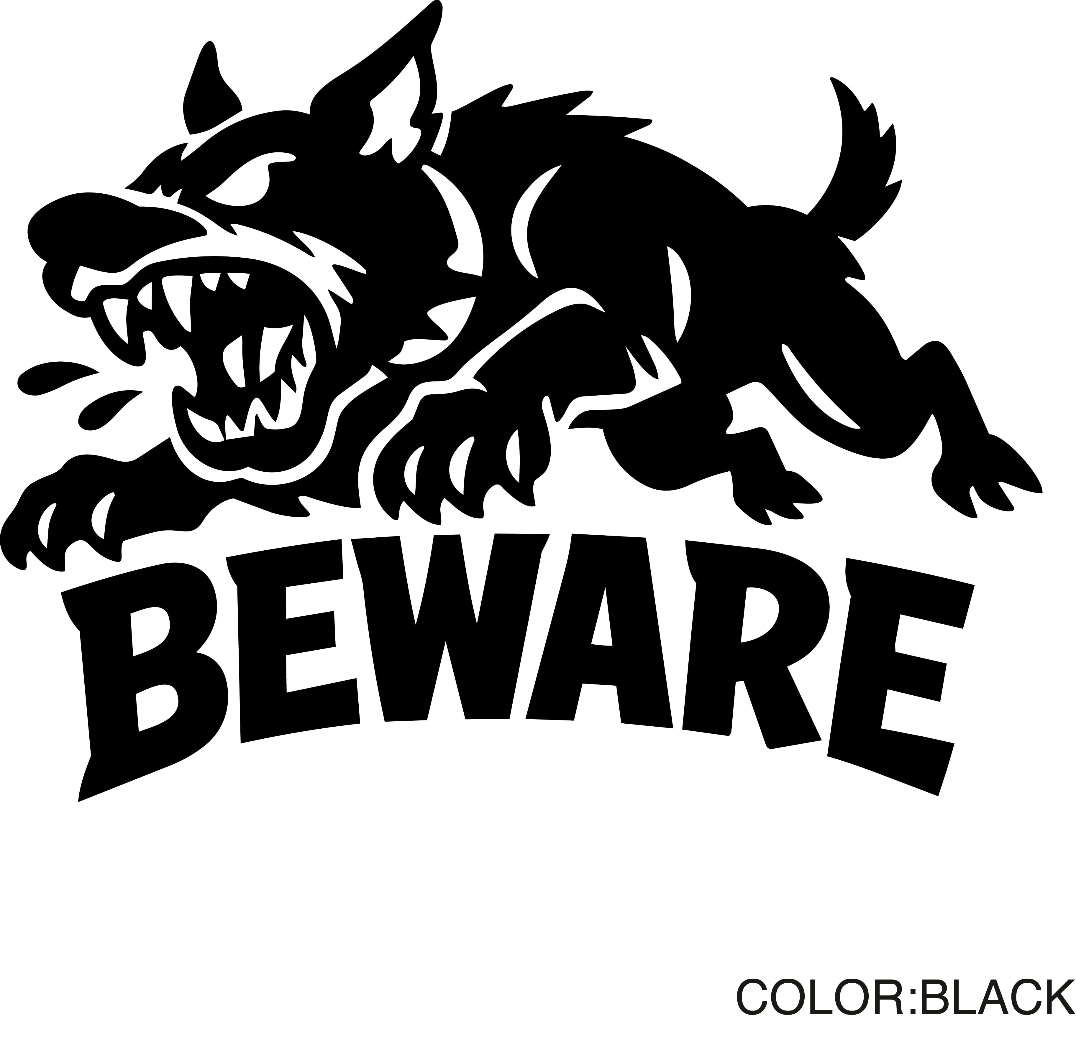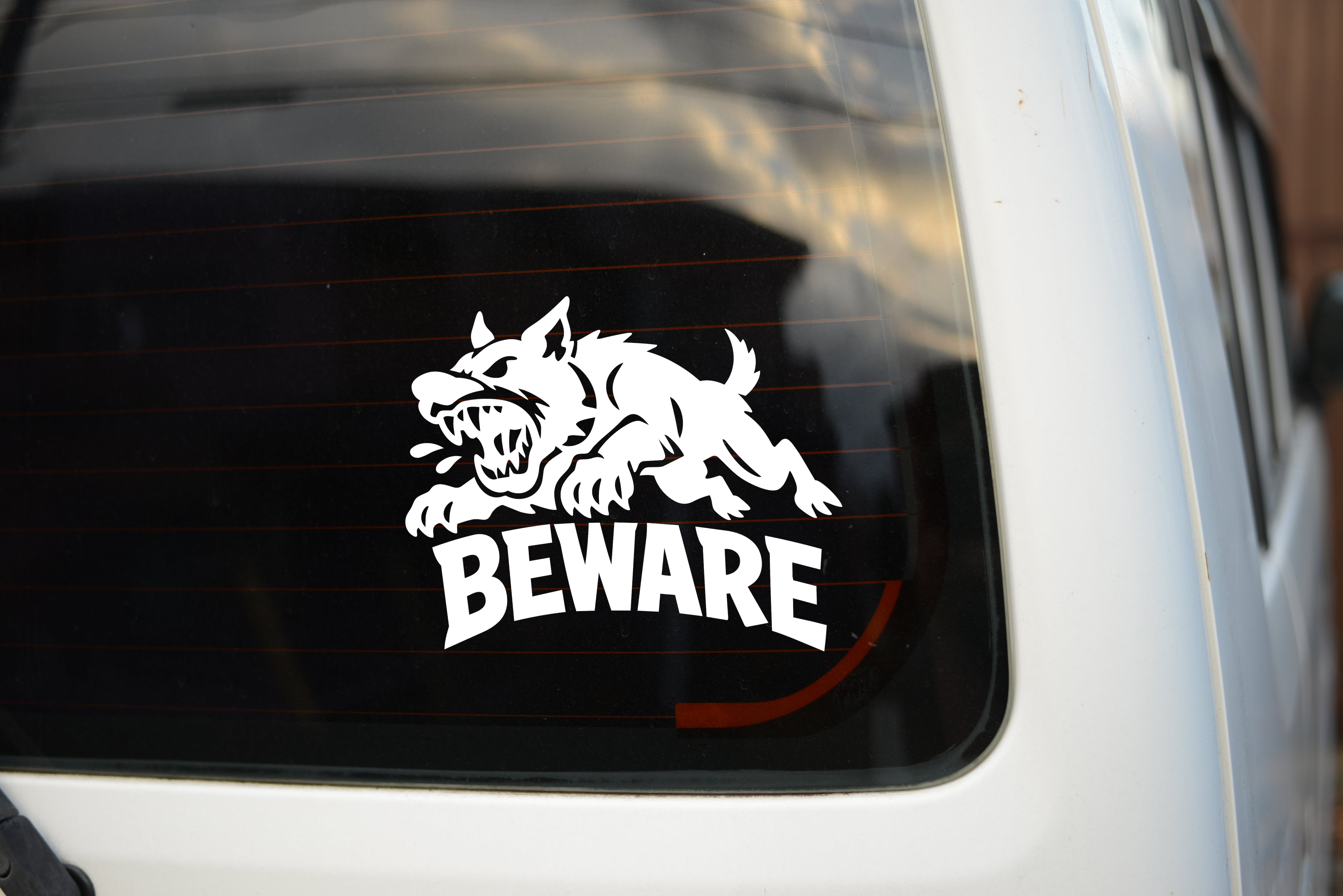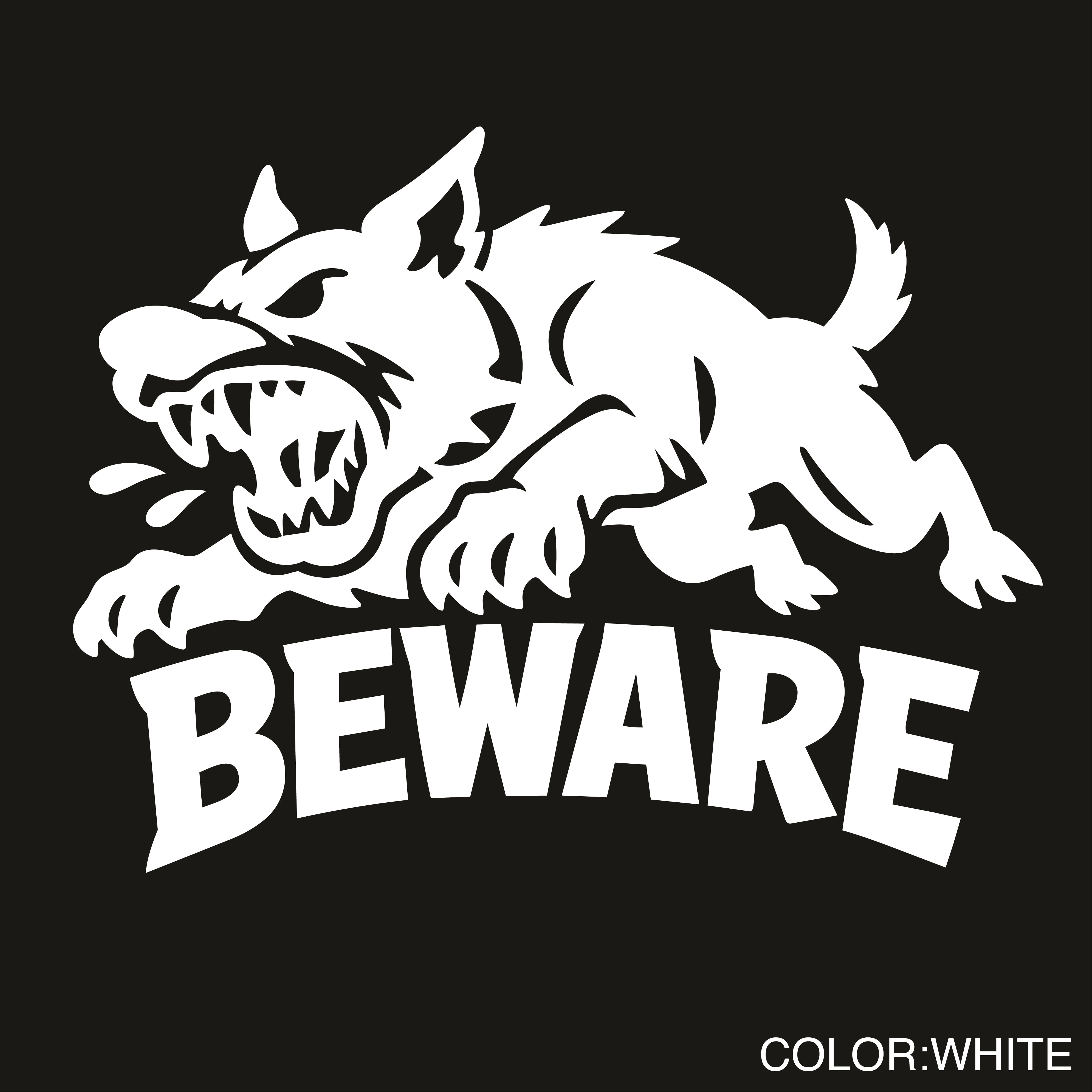 危険 ステッカー 敷地内用 防水 BEWARE 猛犬 転写デカール(白/黒)|カッティングステッカー
