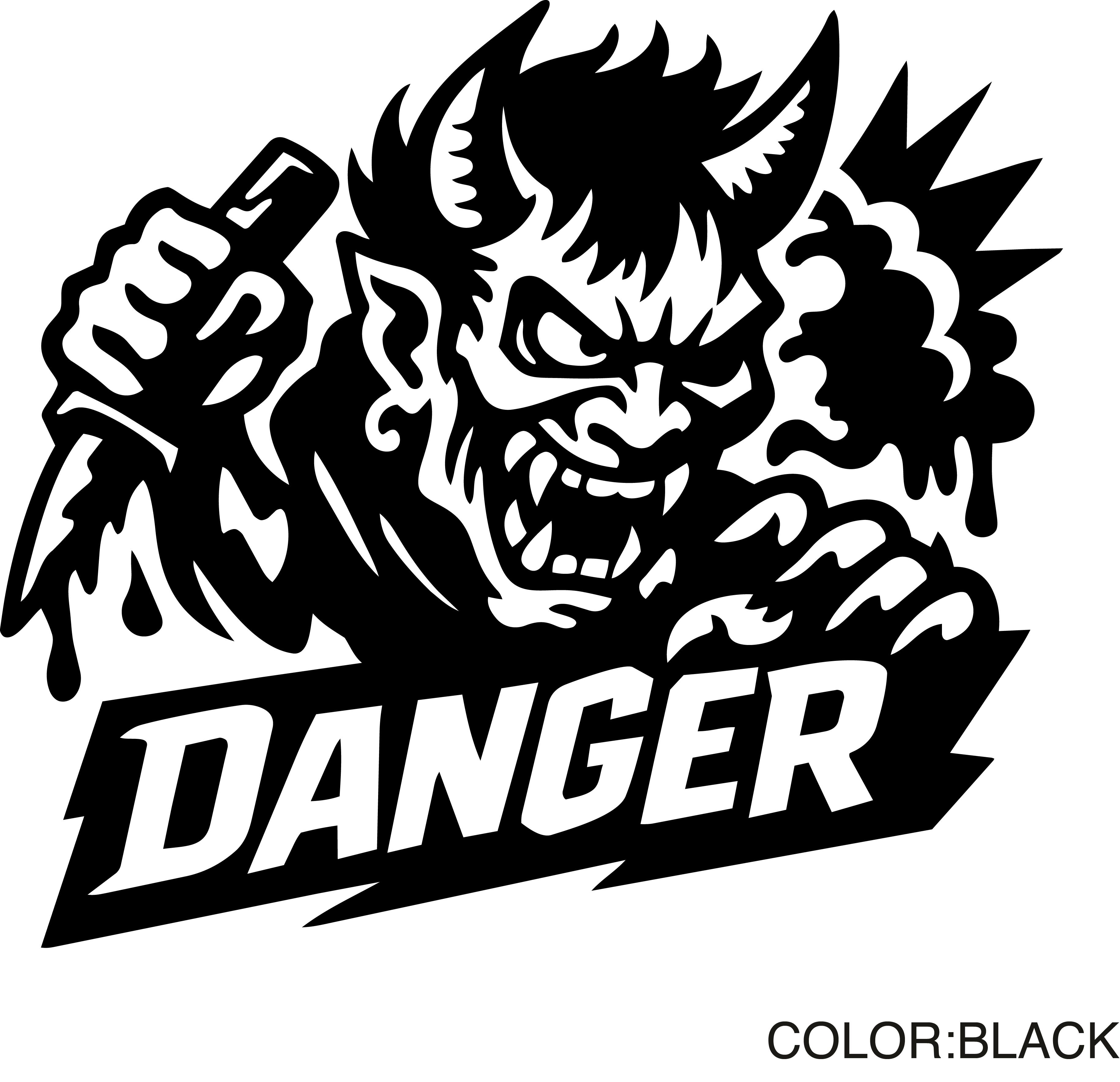 危険 ステッカー 設備用 防水 屋外対応 耐久 DANGER 鬼 転写デカール(白/黒)|カッティングステッカー