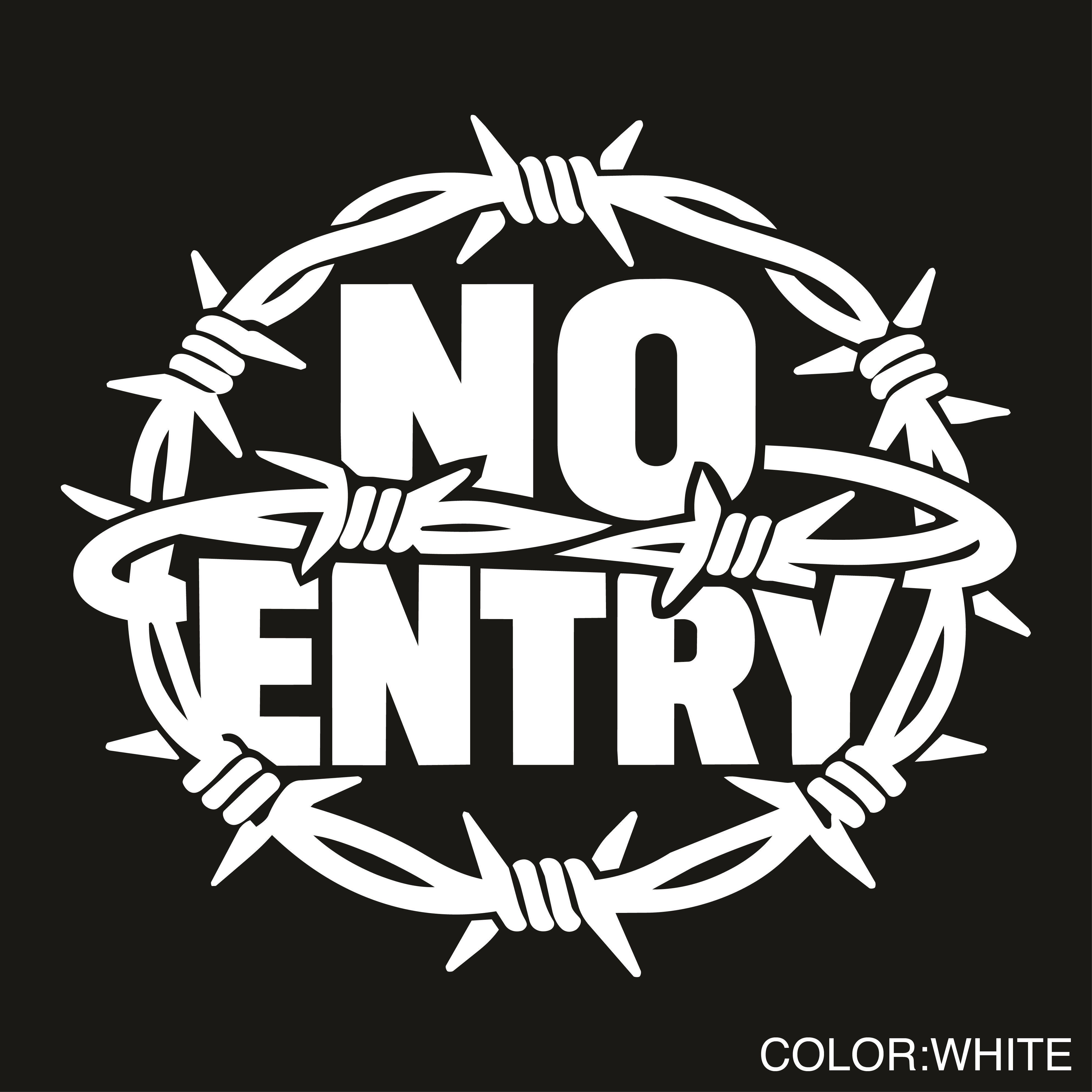 立入禁止 ステッカー 事務所用 防水 屋外対応 耐久 NO ENTRY 有刺鉄線 転写デカール(白/黒)|カッティングステッカー