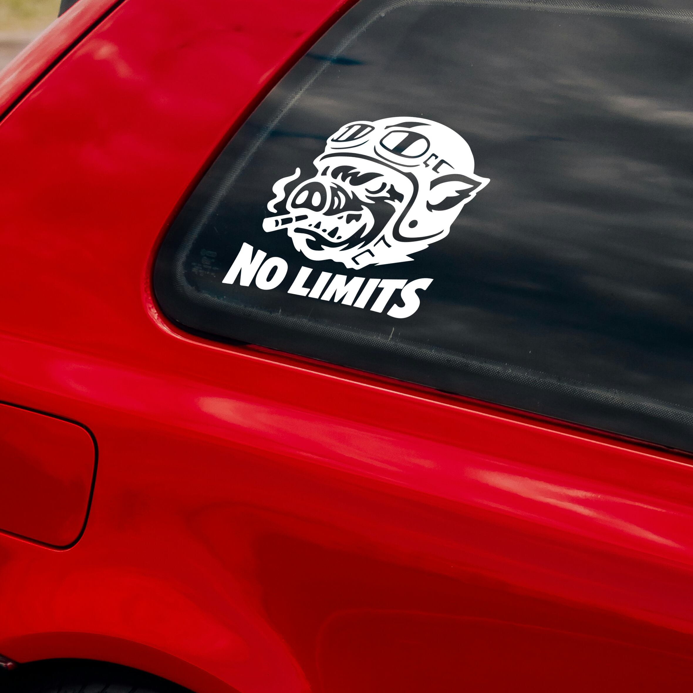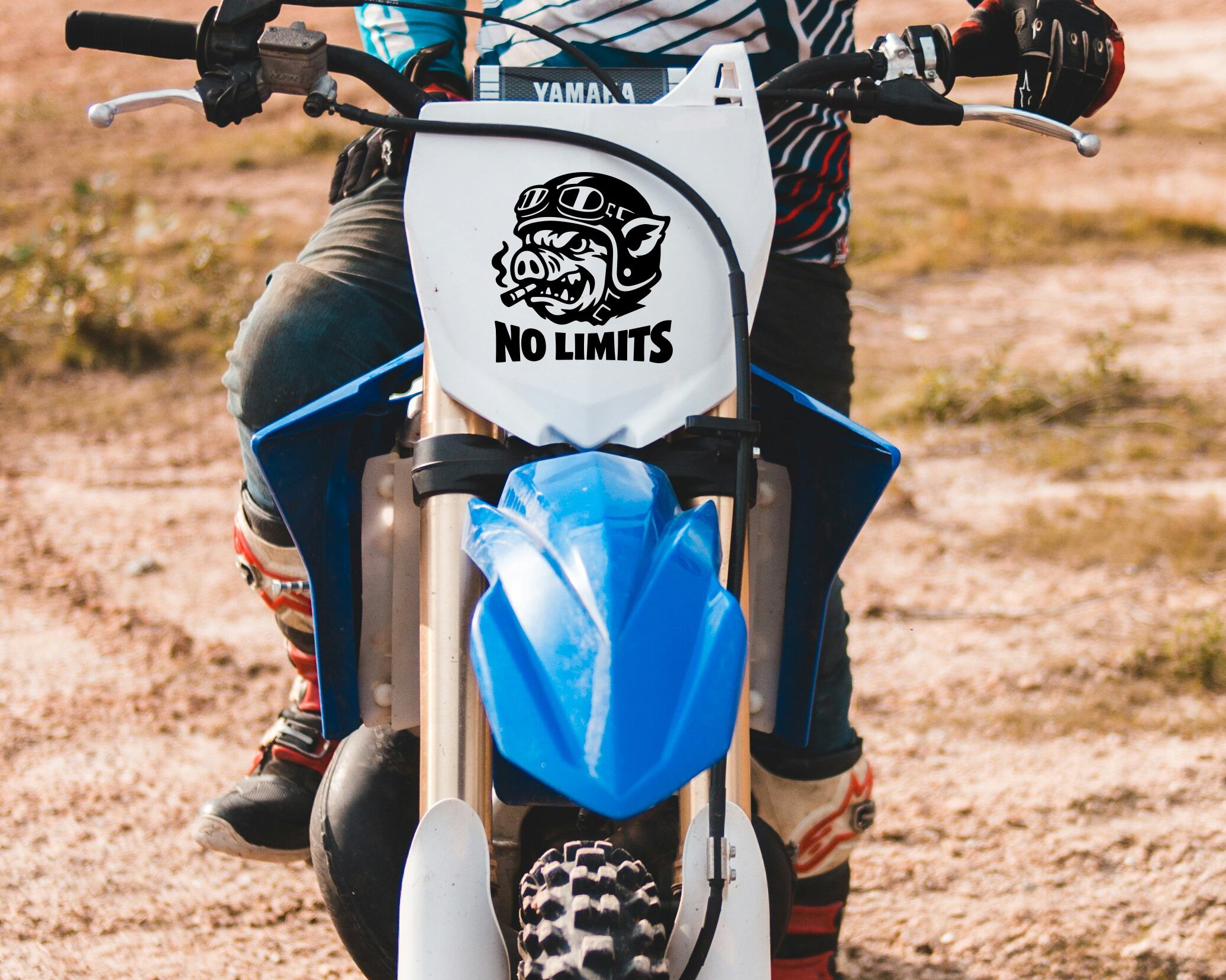バイク ステッカー 防水 屋外対応 耐久 NO LIMITS ブタ 転写デカール(白/黒)|カッティングステッカー
