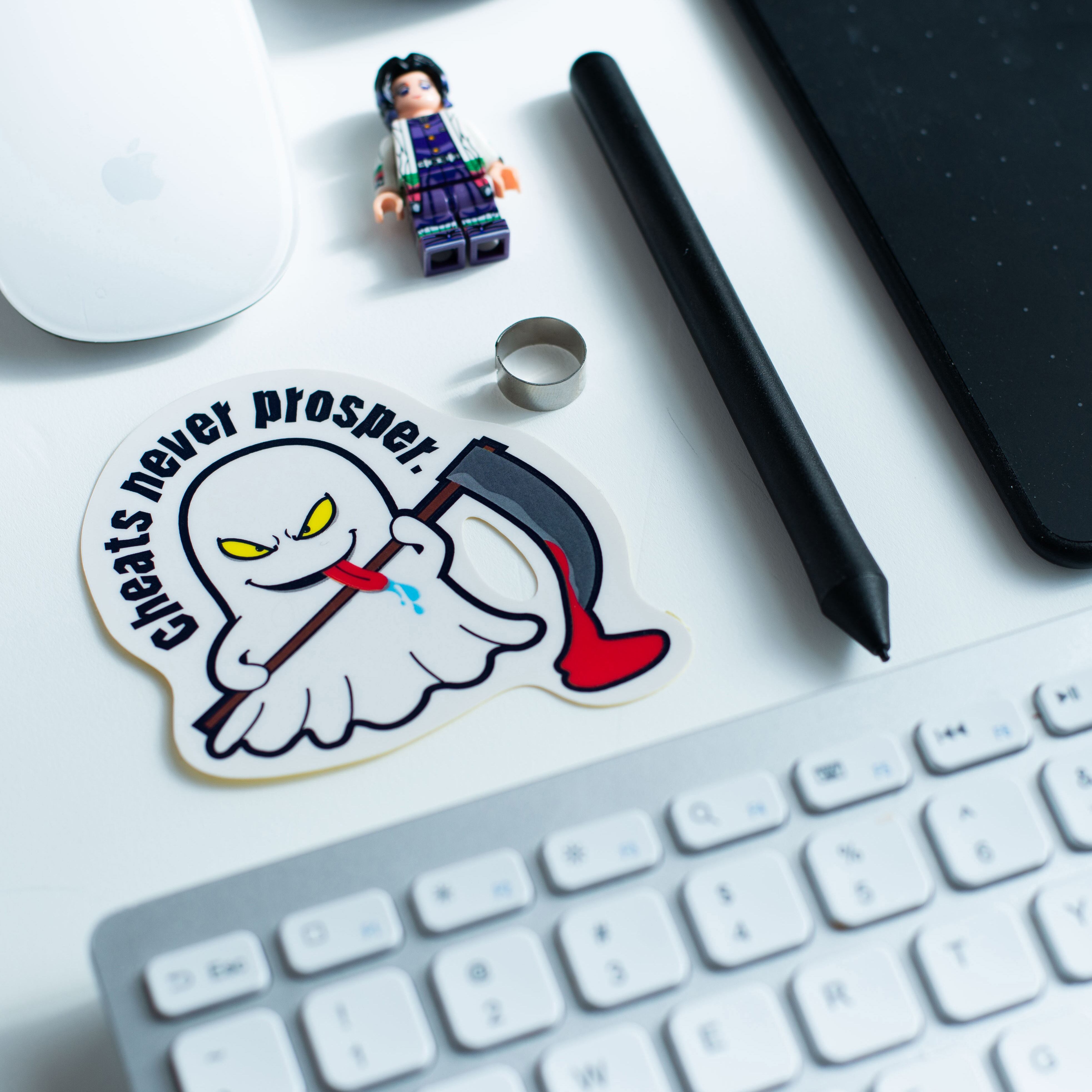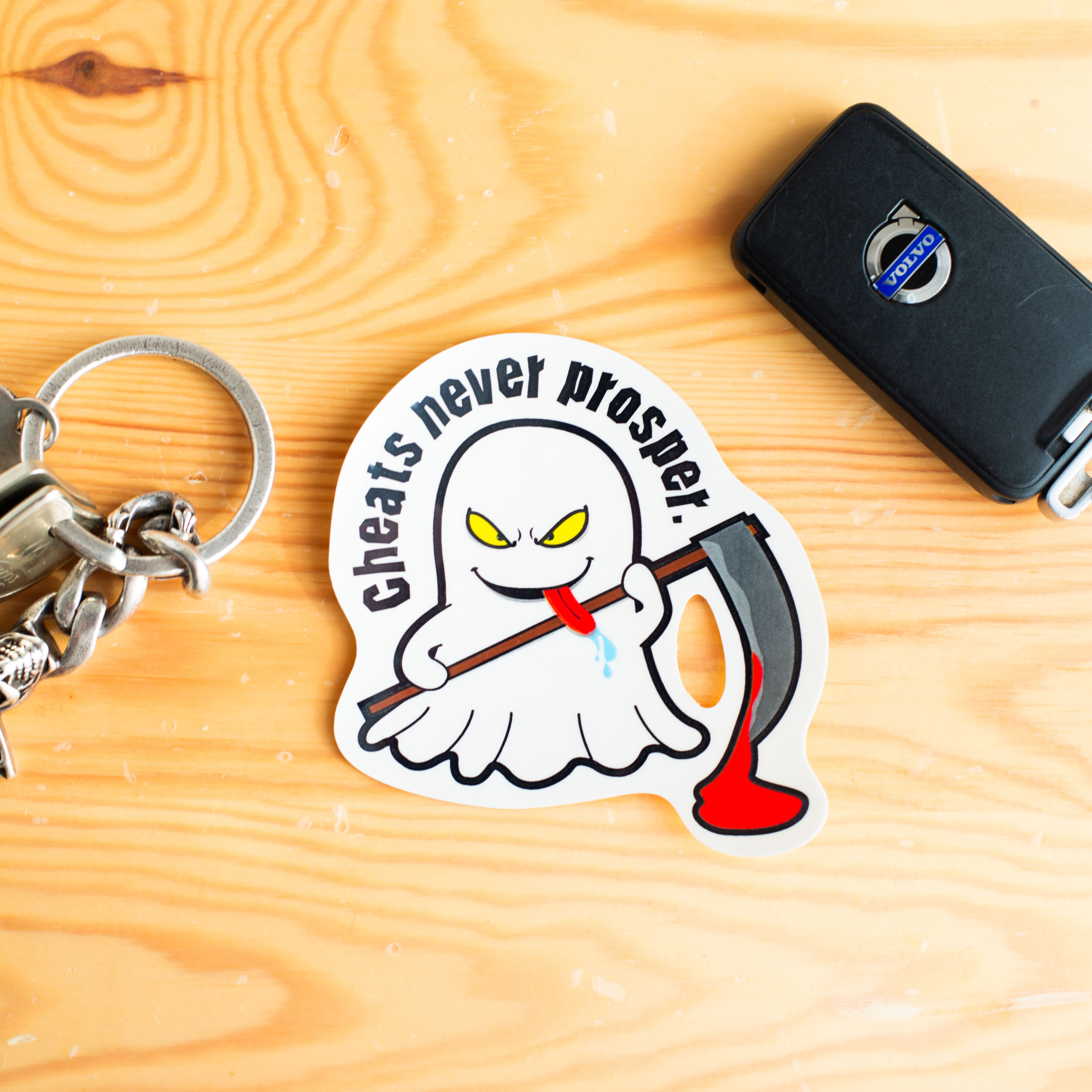 インパクト大な名言ステッカーが新登場!「不正が繁栄することはない」Cheats never prosper.のメッセージが、あなたのバイクやヘルメット、お気に入りのガジェットに力強く主張します。ゴーストイラストがユニークなデザインで、周囲の注目度もUP!さらにUV加工が施されているので、耐久性も抜群です。毎日の活力やモチベーションになること間違いなし!自分へのご褒美やプレゼントにも最適なアイテムです。